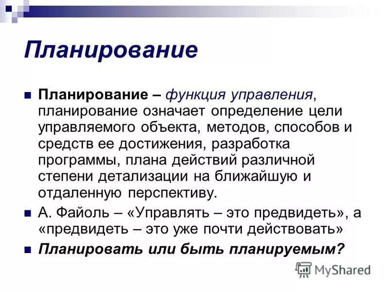 Планирование это определение.