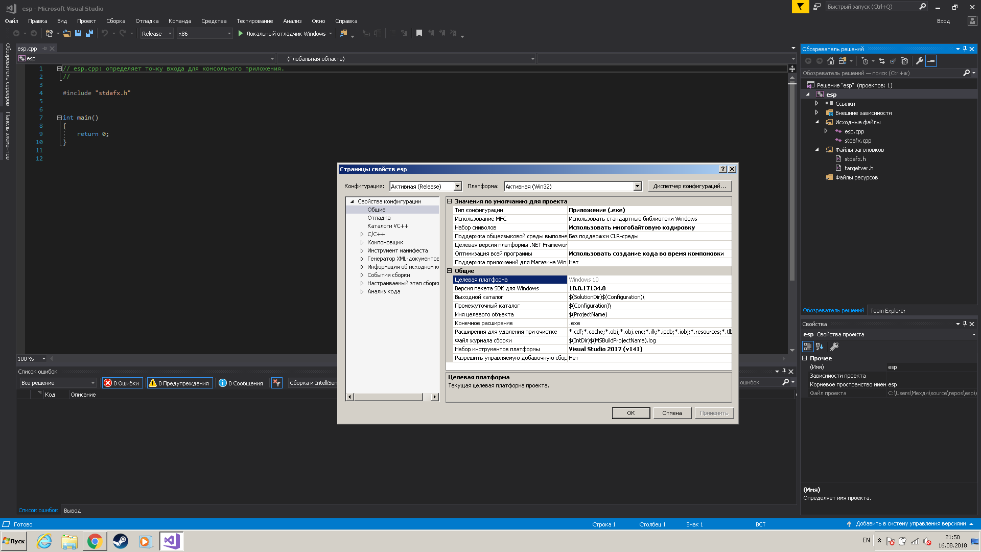 Microsoft Visual Studio окно.