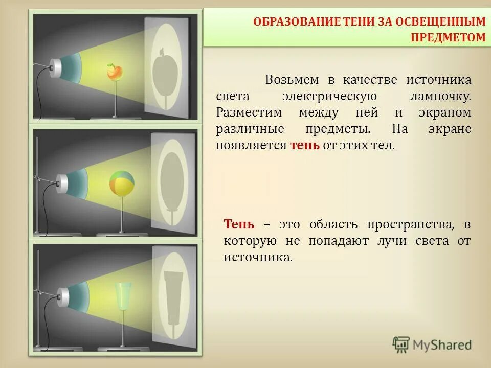 Тени предметов.