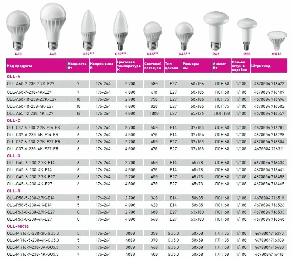 Подбор ламп
