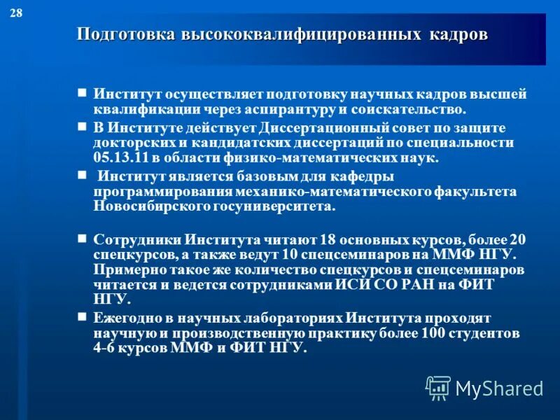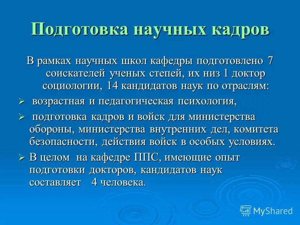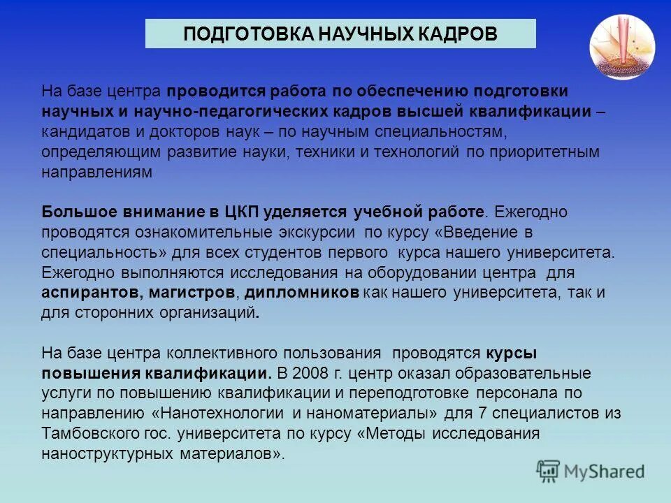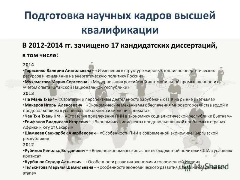 Подготовка научных кадров.