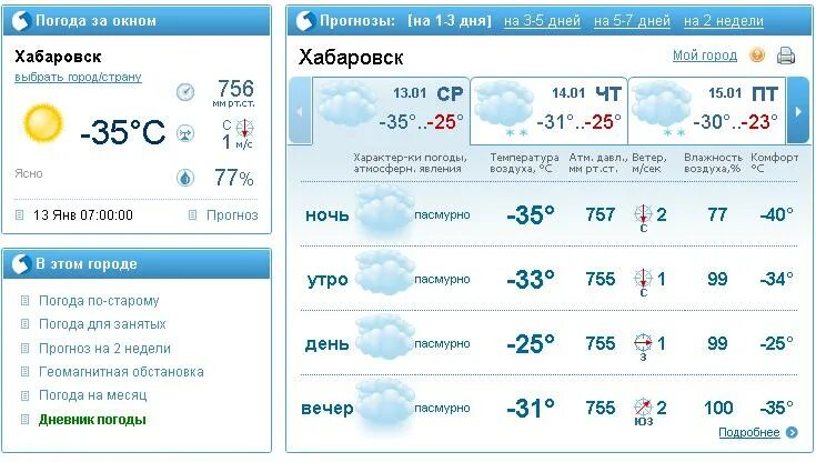 Погода на ночь и на утро.