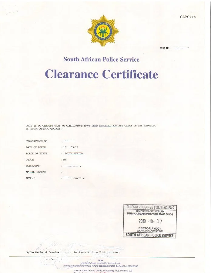 Police Clearance Certificate.