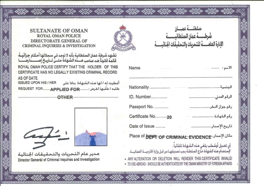 No Criminal record Certificate.