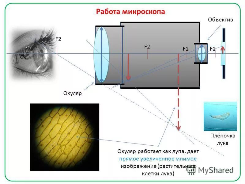 Алгоритм построения изображения в линзе.