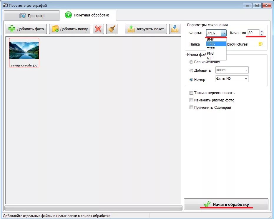 Поменять формат фото
