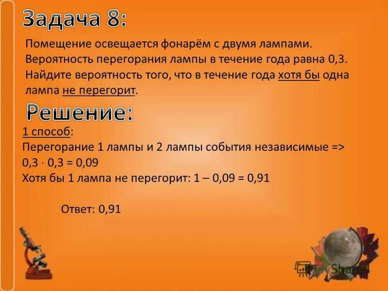 Задачи на две лампочки вероятность.
