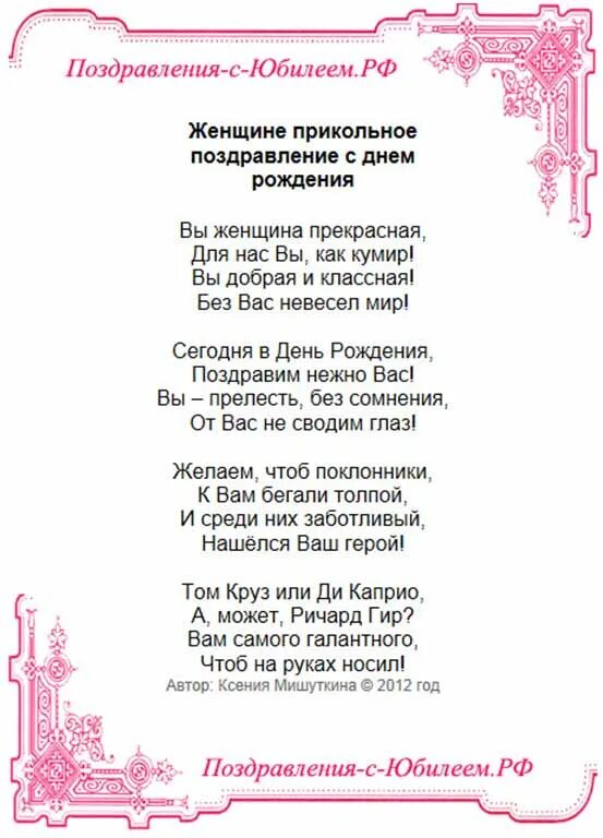 Поздравление с юбилеем женщине прикольные.