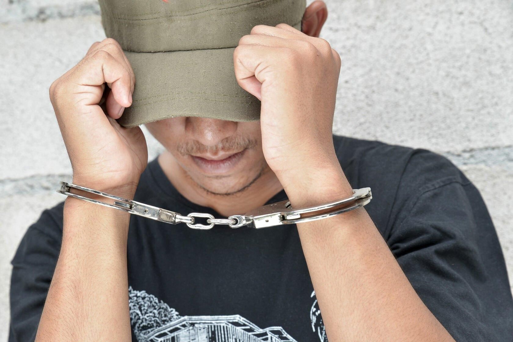Преступник в наручниках.