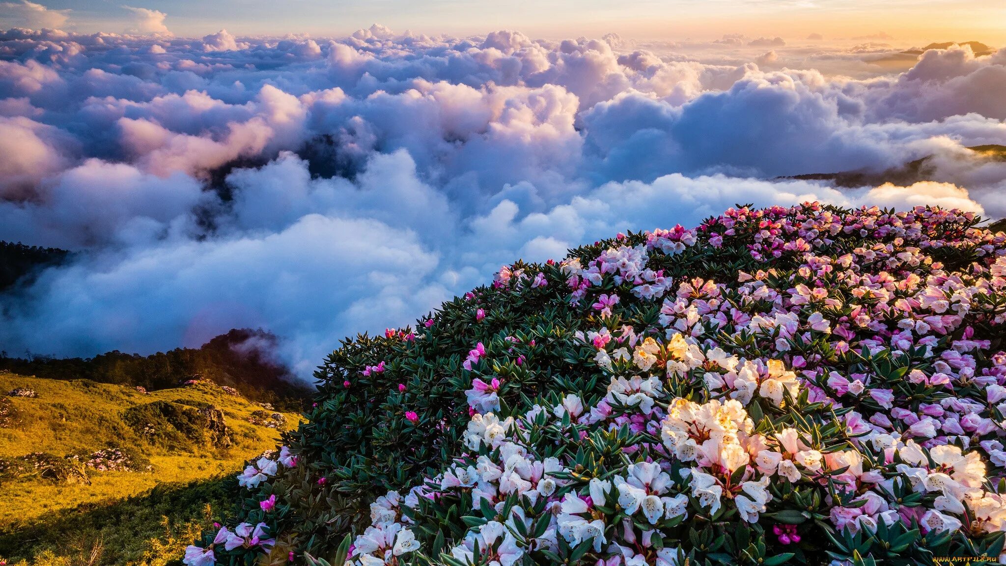Красивые пейзажи с цветами.