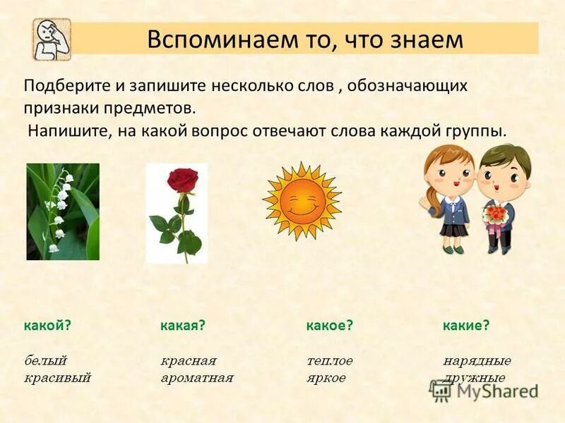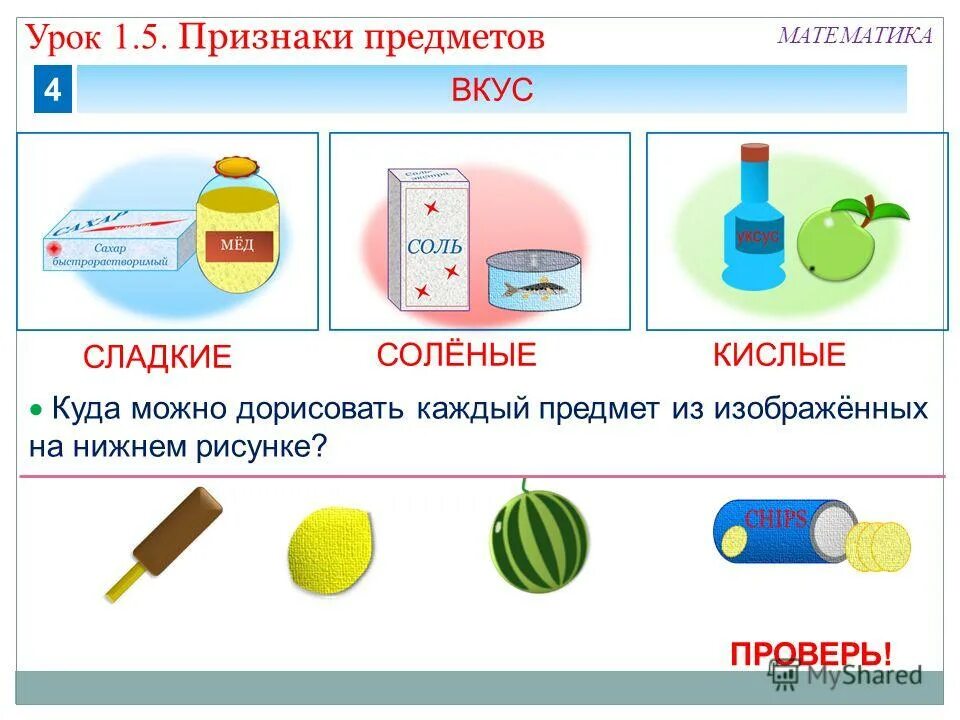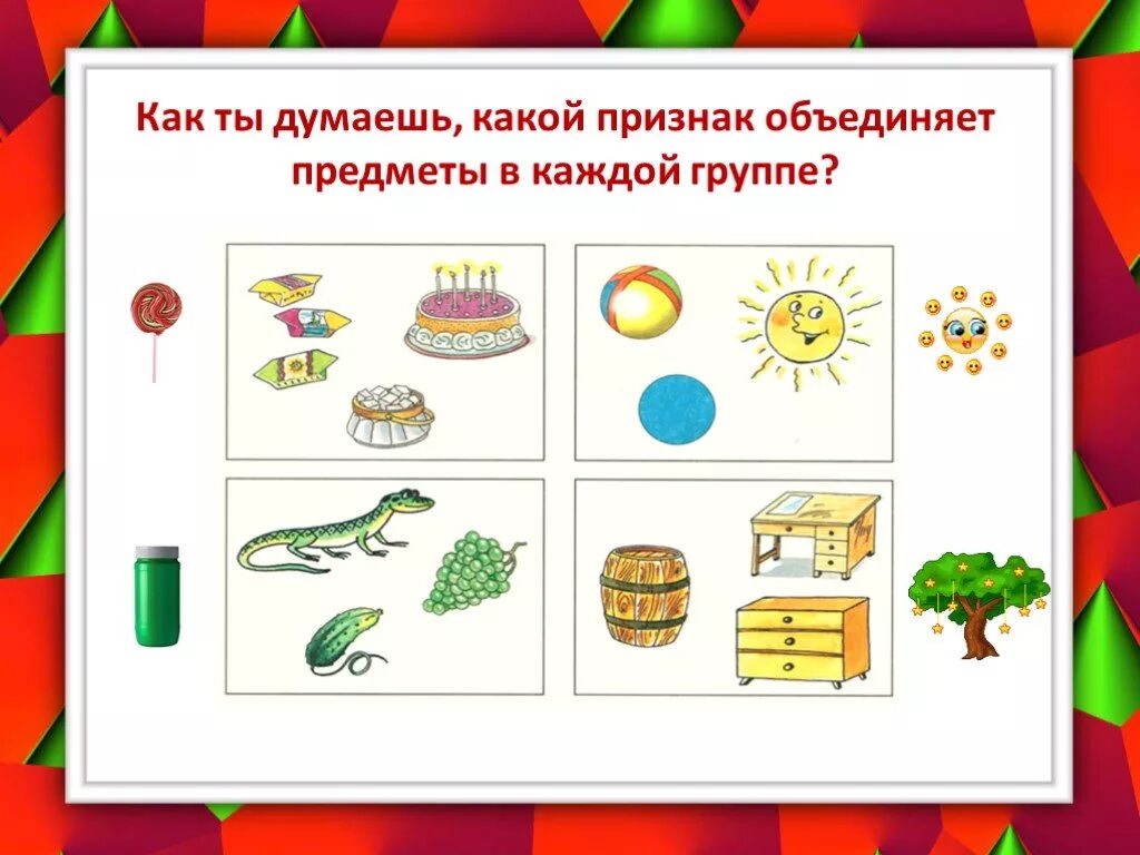 Группировка предметов по признакам.