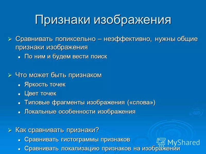 Признаки изображения.