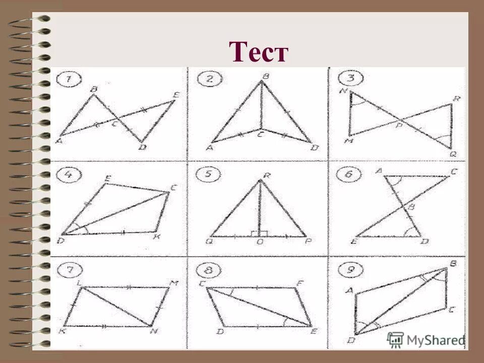 Признаки равенства треугольников на готовых чертежах 7 класс.