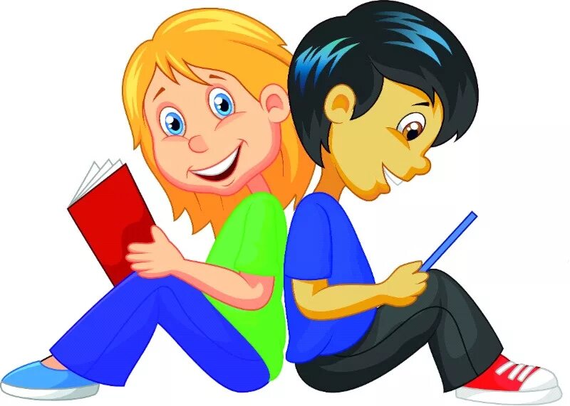 Мультяшные дети с книгами.