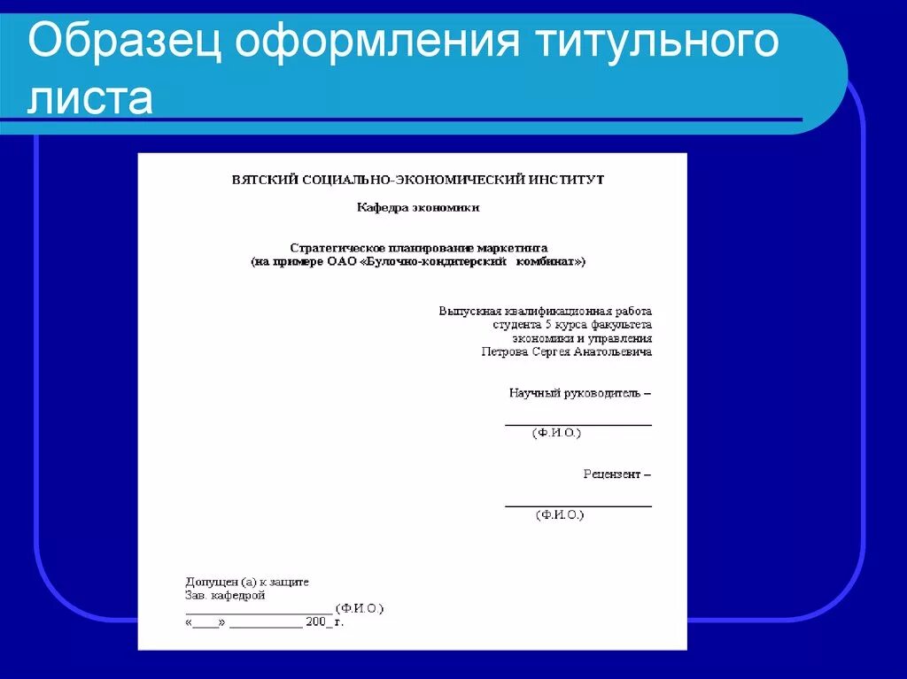Проект титульный лист образец