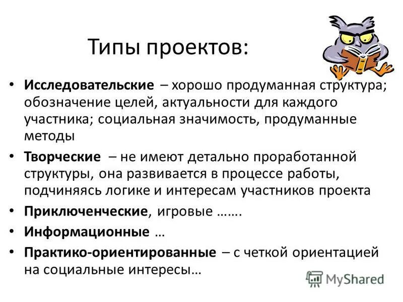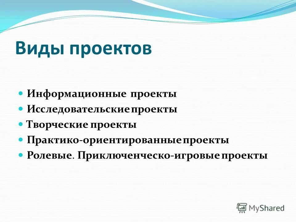 Типы и виды проектов.