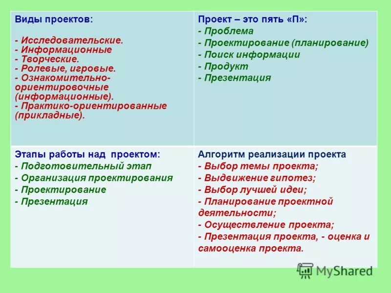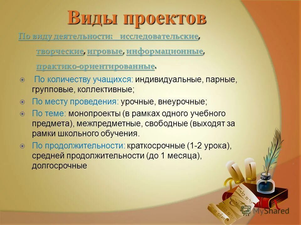 Виды проектной деятельности.