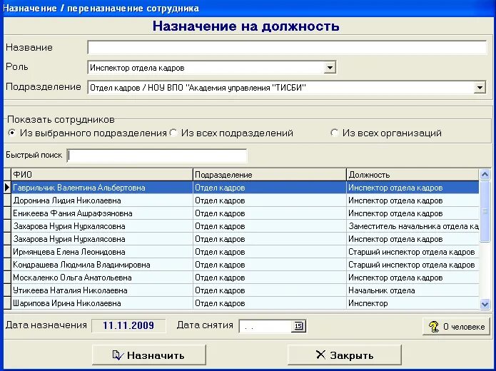 Программа кадры.