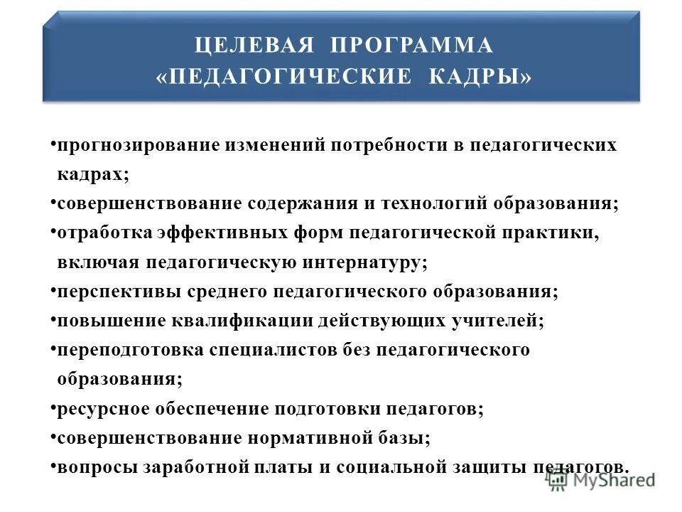 Кадровые программы.