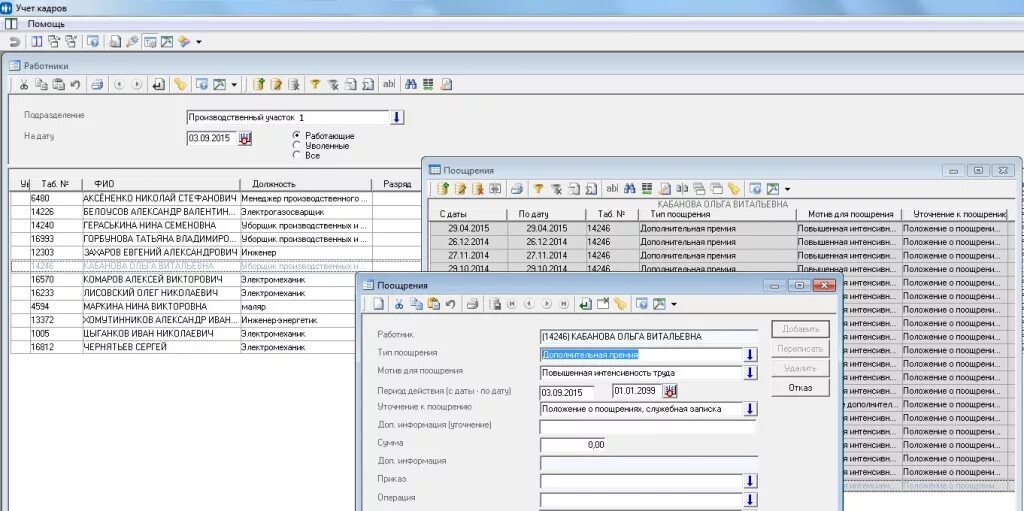 Учет сотрудников.