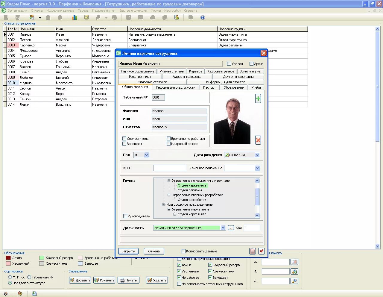 Программа отдел кадров плюс.