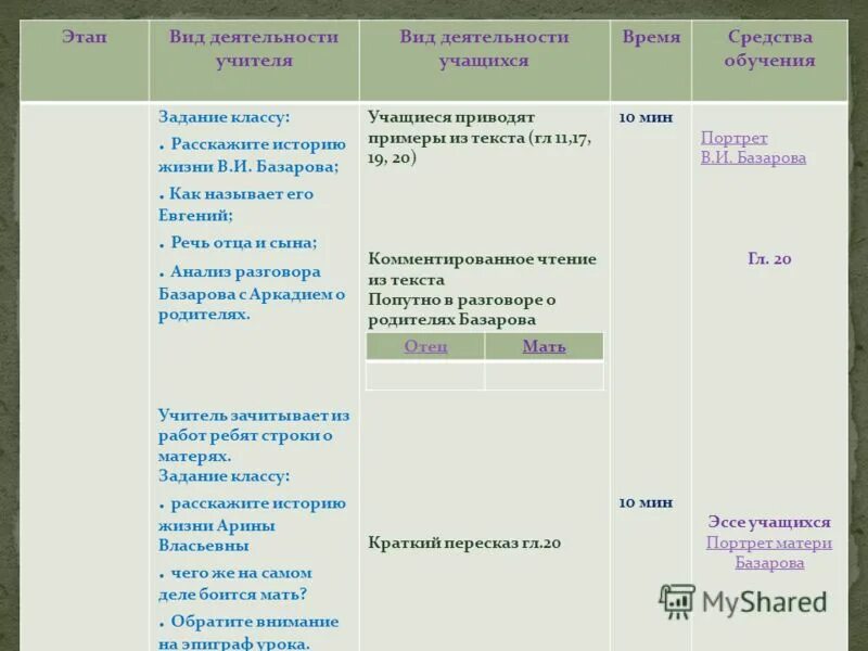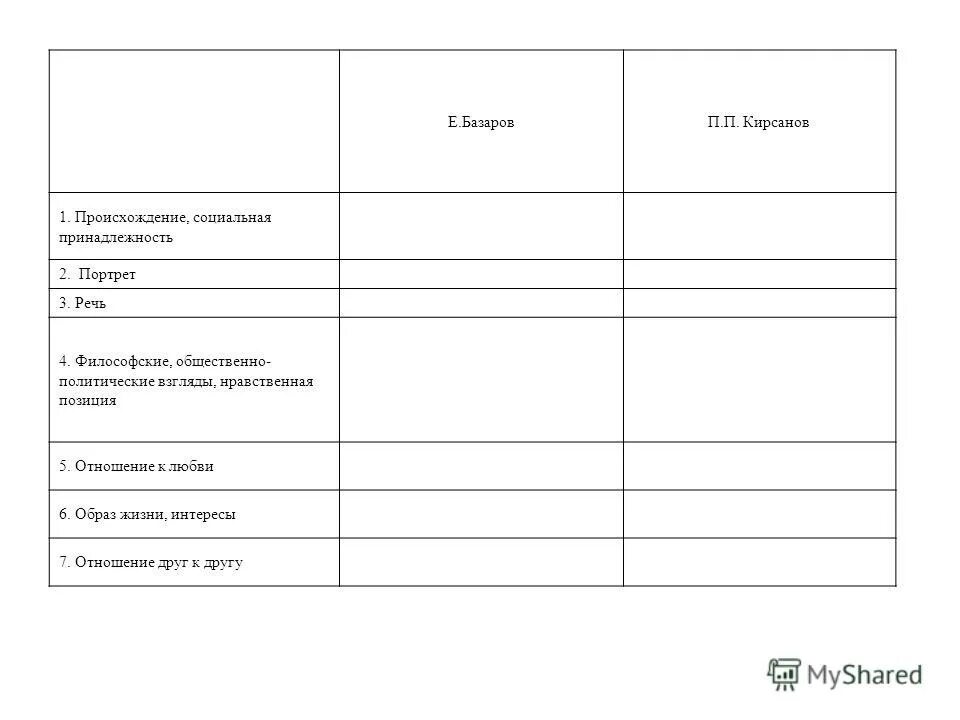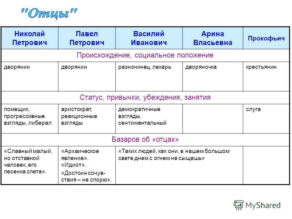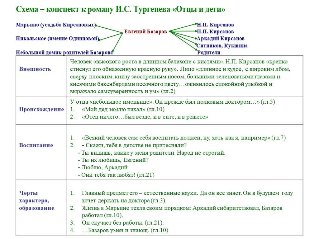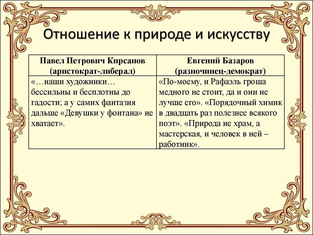 Воспитание и образование Базарова и Павла Петровича таблица.