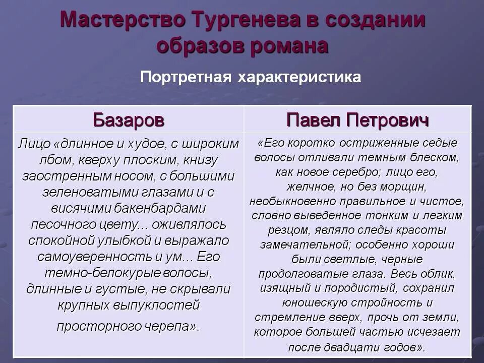 Павел Петрович Кирсанов внешность происхождение воспитание таблица.