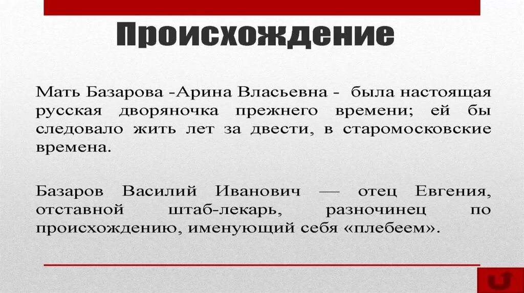 Происхождение базарова.