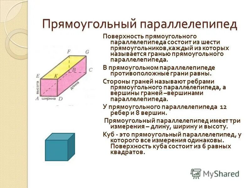 Параллелепипед грани и ребра измерение.