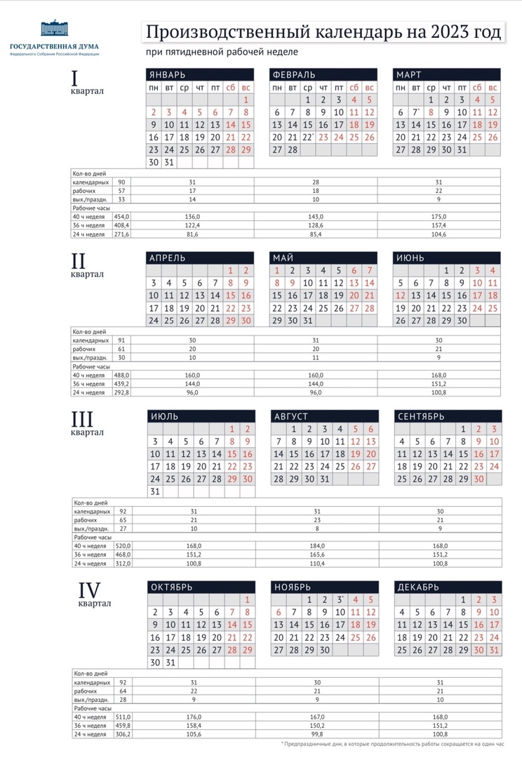 Рабочие часы на 2023 год.