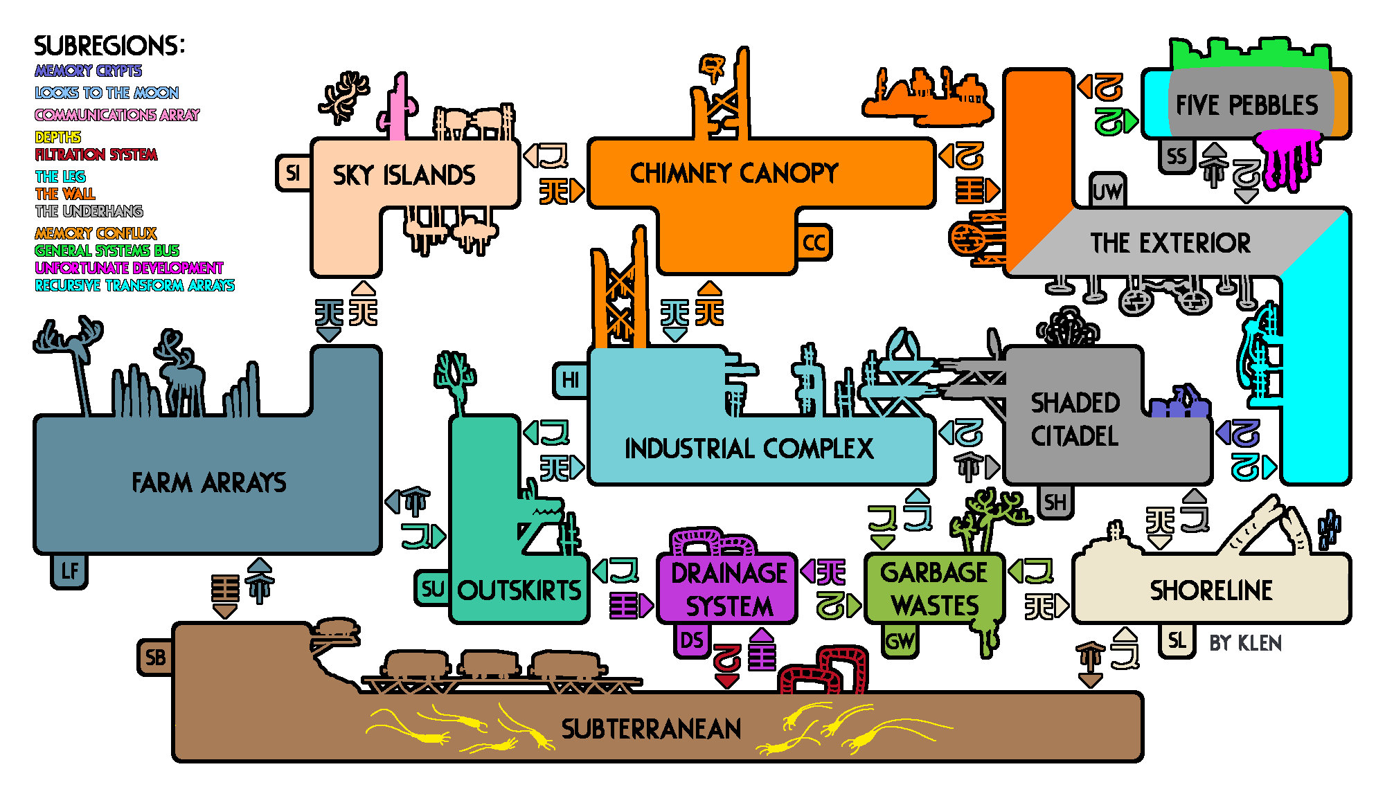 Rain World карта локаций.