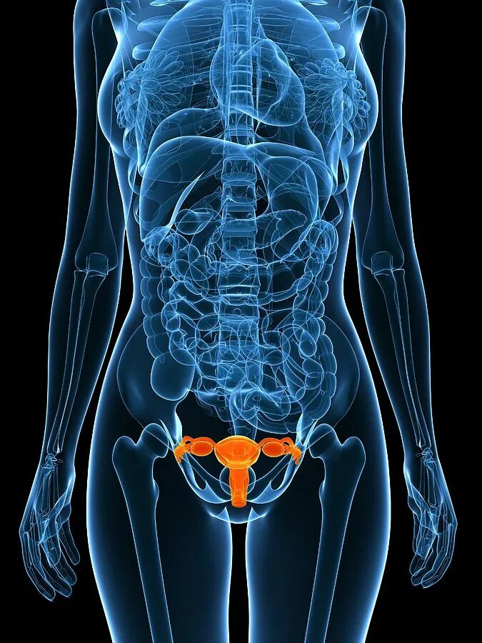 Расположение яичников у человека.