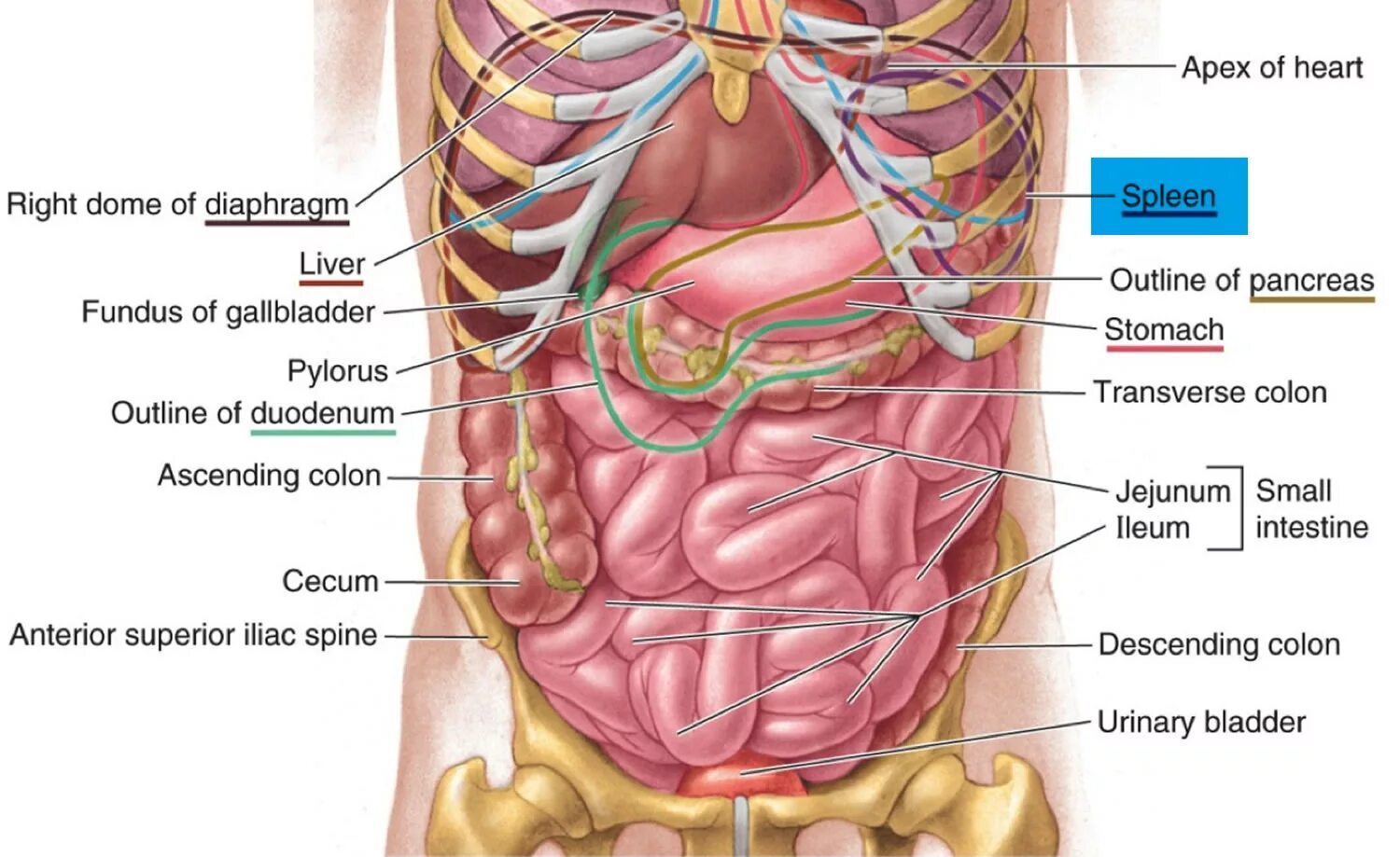 Расположение внутренних органов.