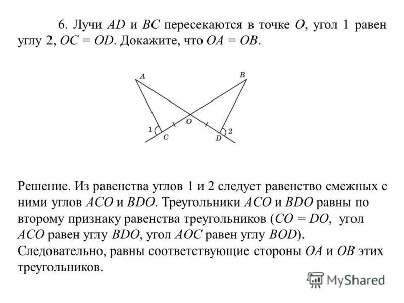 Доказать равенство треугольников 7 класс.