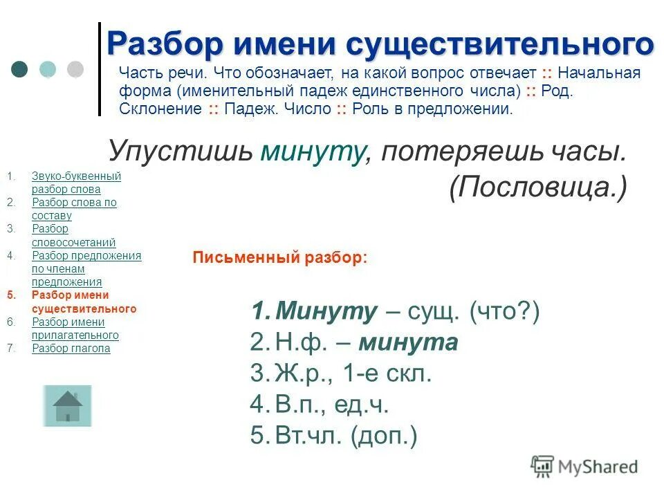 Как делать морфологический разбор существительного 6 класс.
