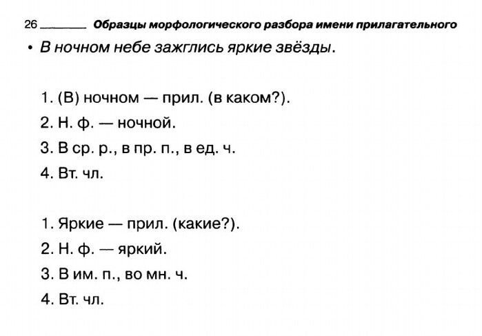 Алгоритм морфологического разбора имени существительного 3 класс.