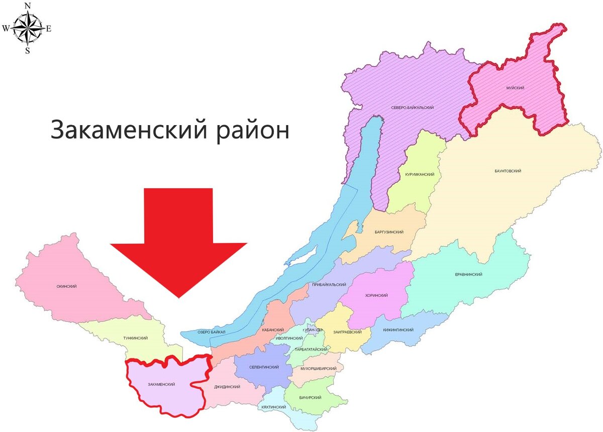 Карта Бурятии с районами.