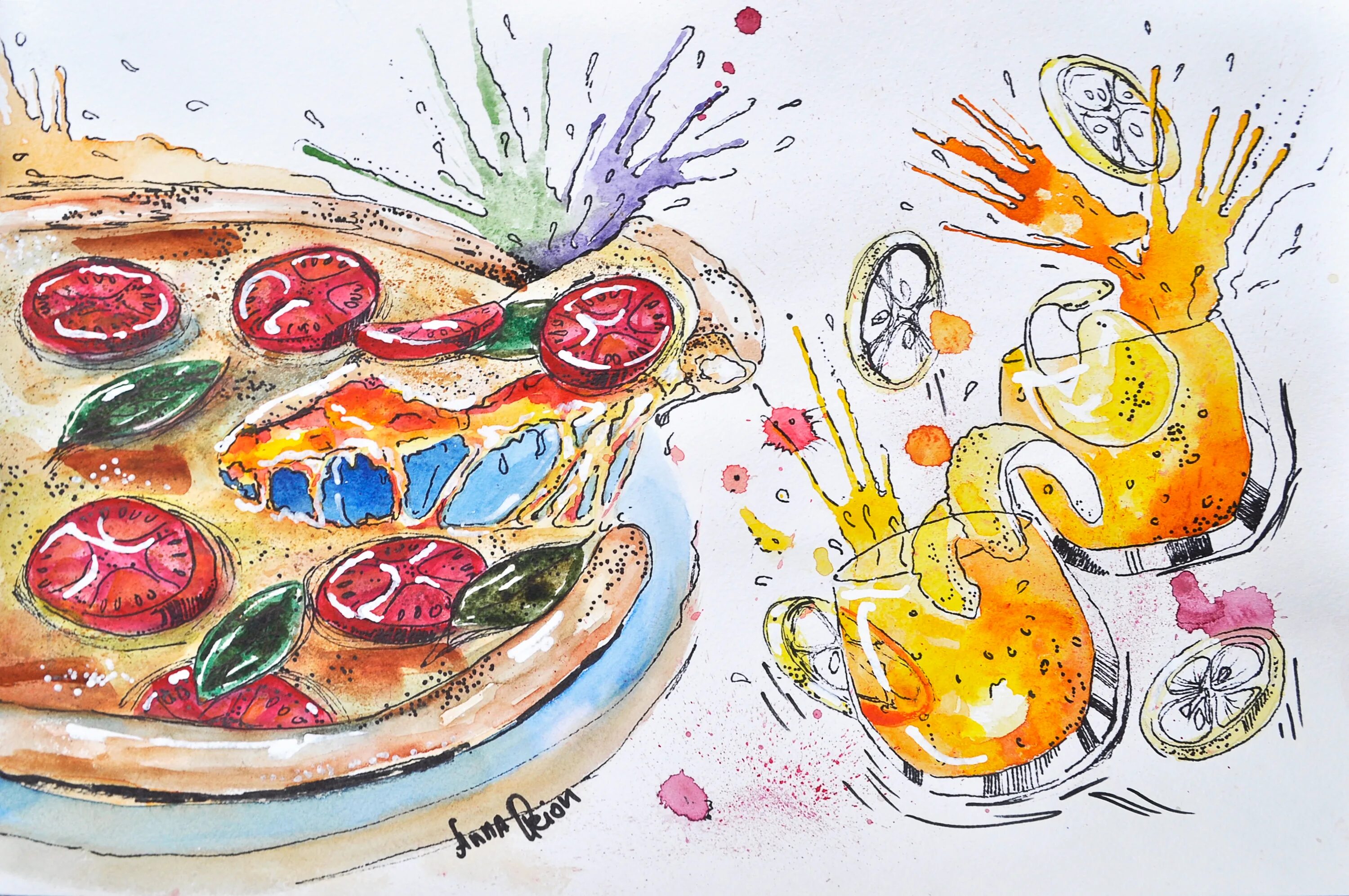 Акварельные иллюстрации еды.