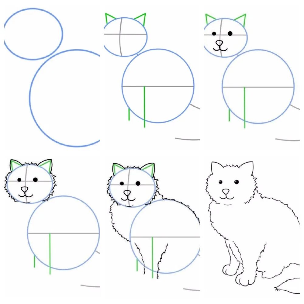 Поэтапное рисование животных для детей.