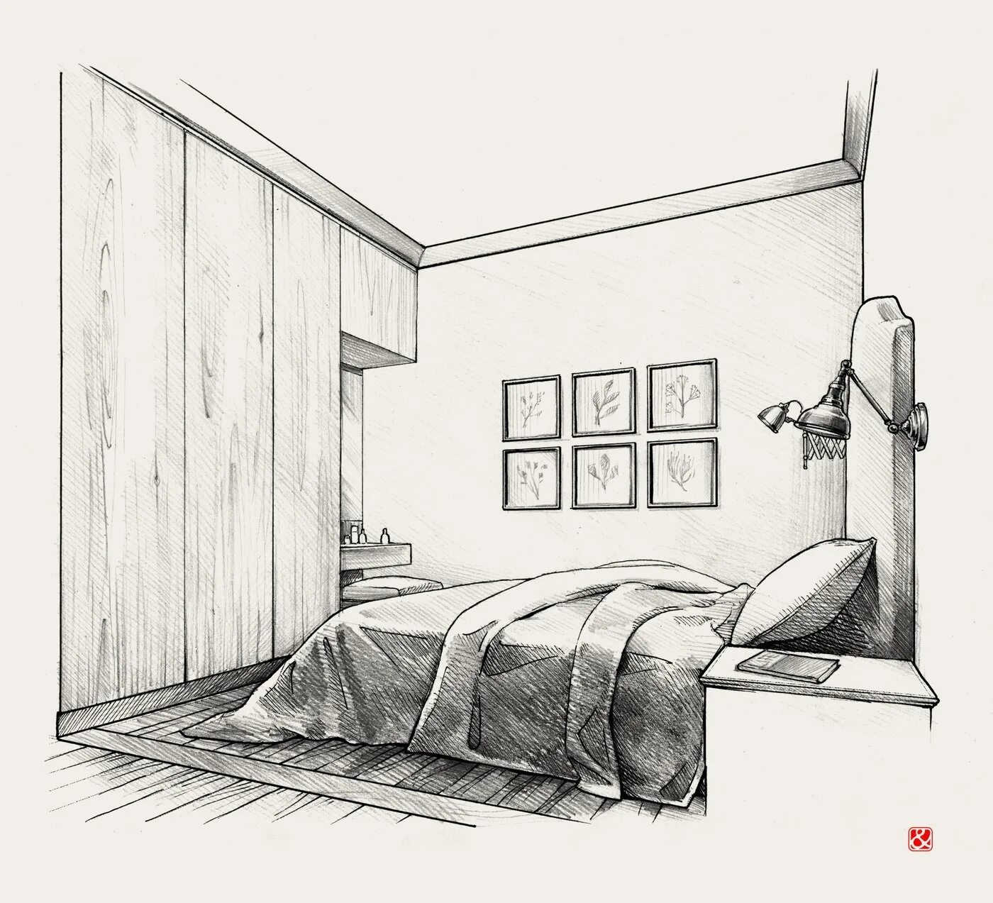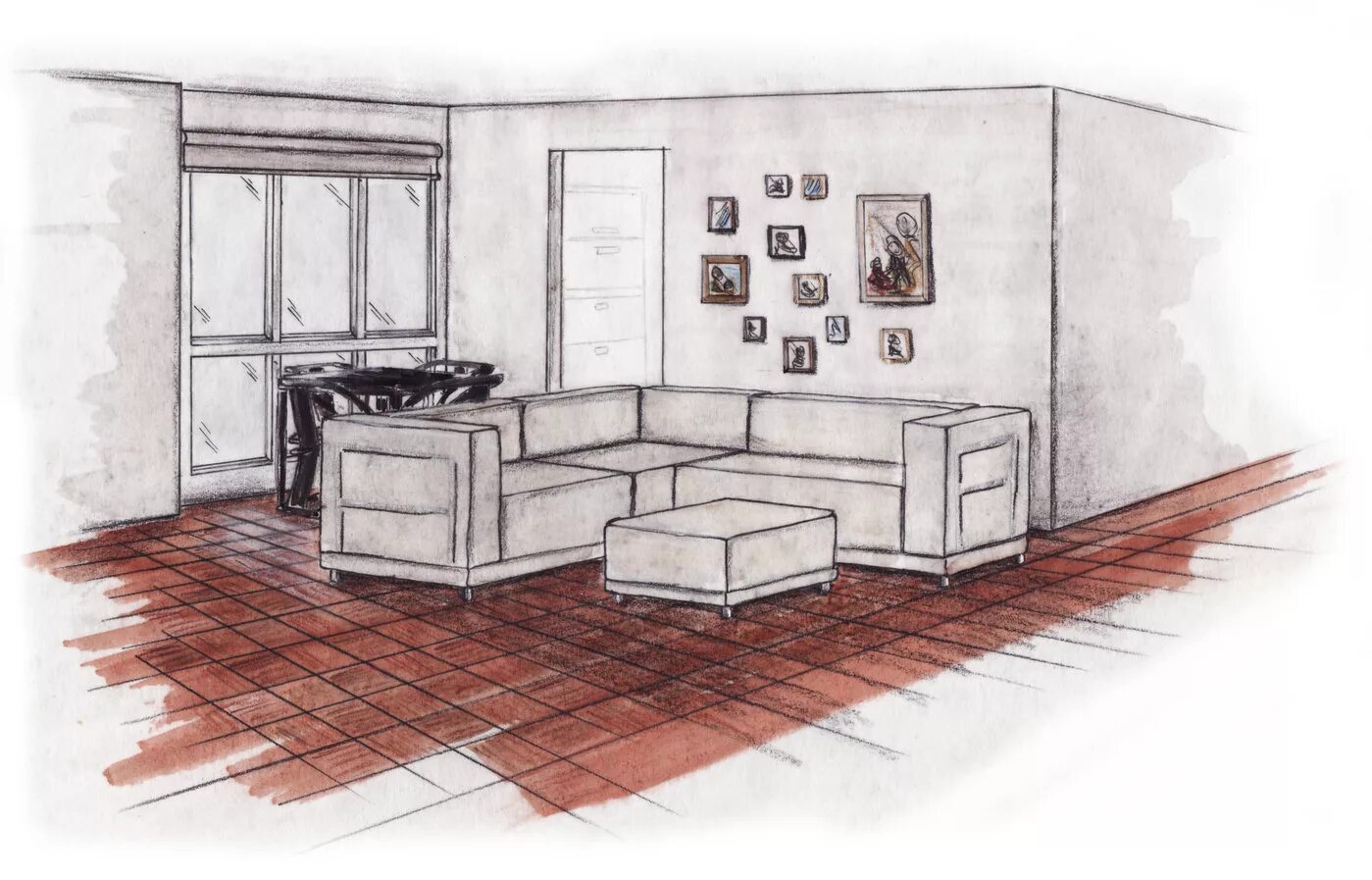 Интерьер в штриховке.