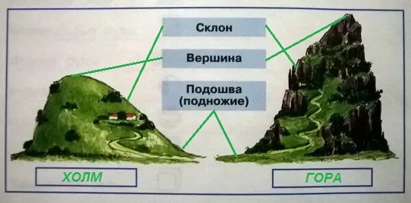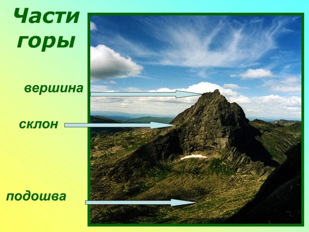 Гора рисунок для детей вершина склон подошва.