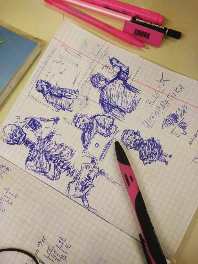 Рисунки ручкой в тетради.