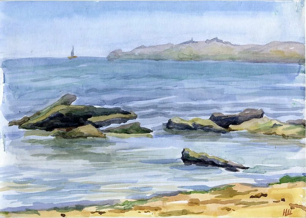 Нарисовать берег моря.