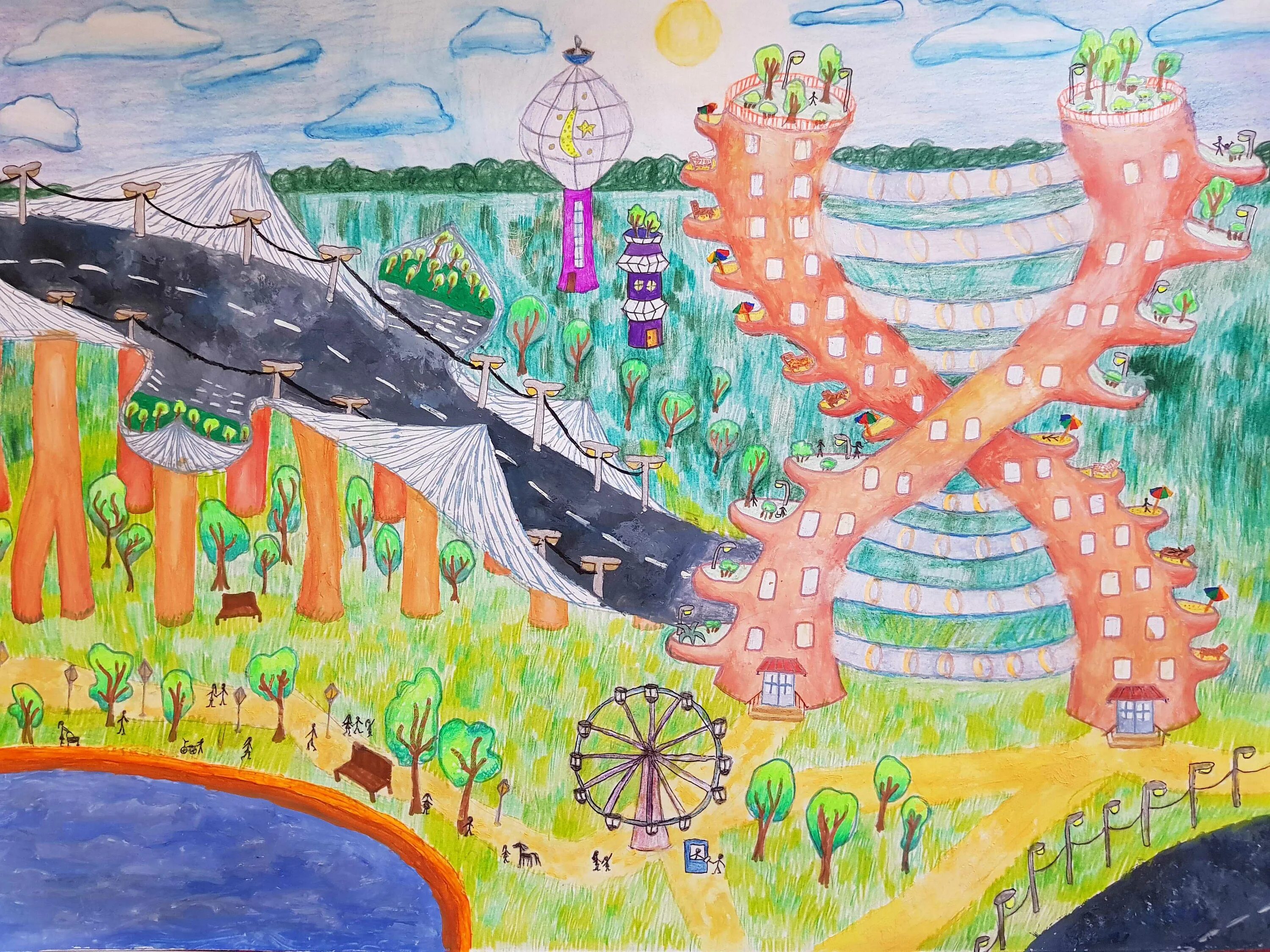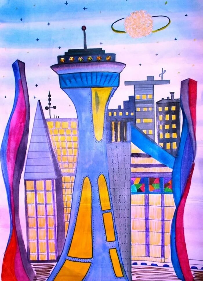 Город будущего рисунок для детей.