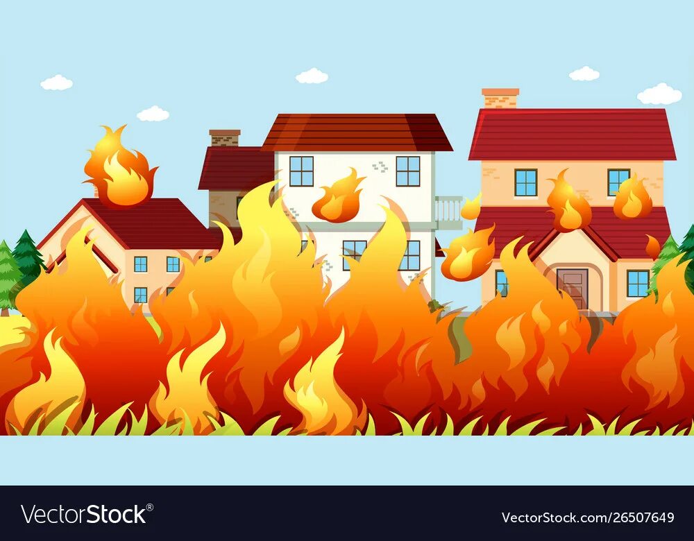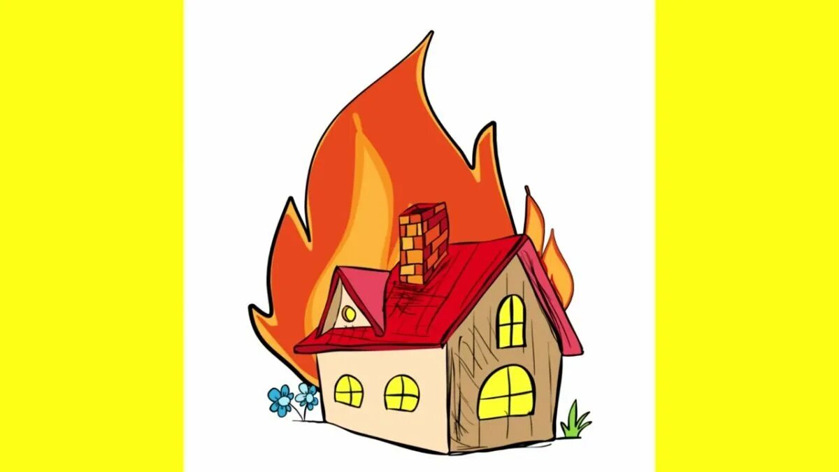 Дом горит рисунок.