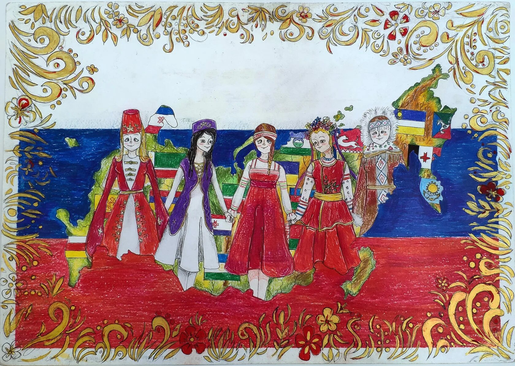 Рисунок на тему Дружба народов России.