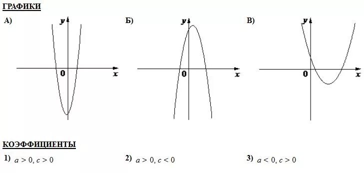Коэффициенты графиков функций y ax2+BX+C.