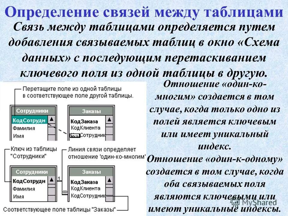 Связи таблиц примеры.