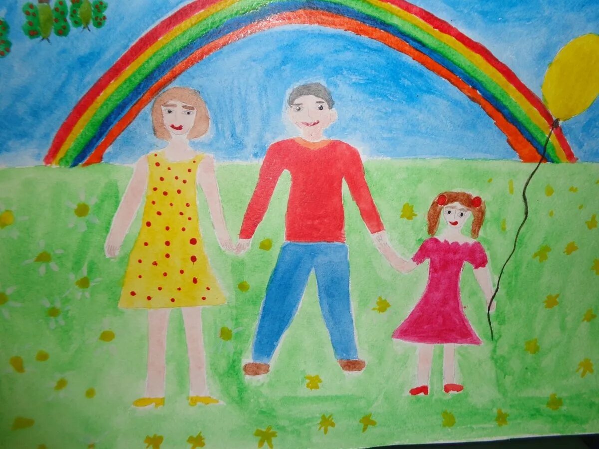 Детские рисунки счастливая семья.