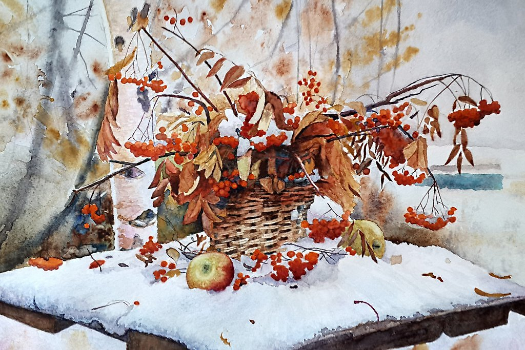 Живопись осенний снег.